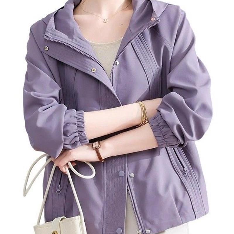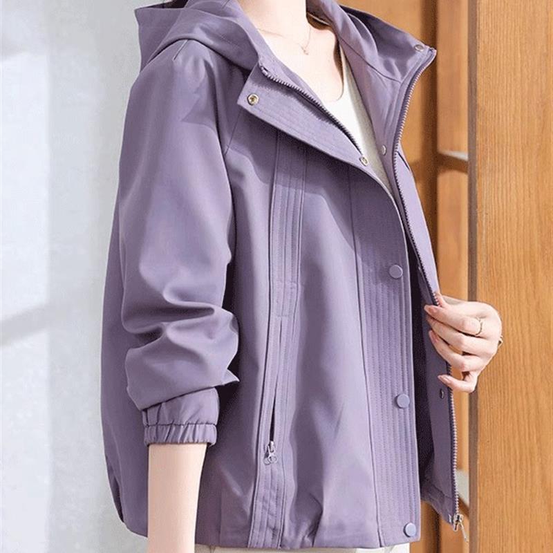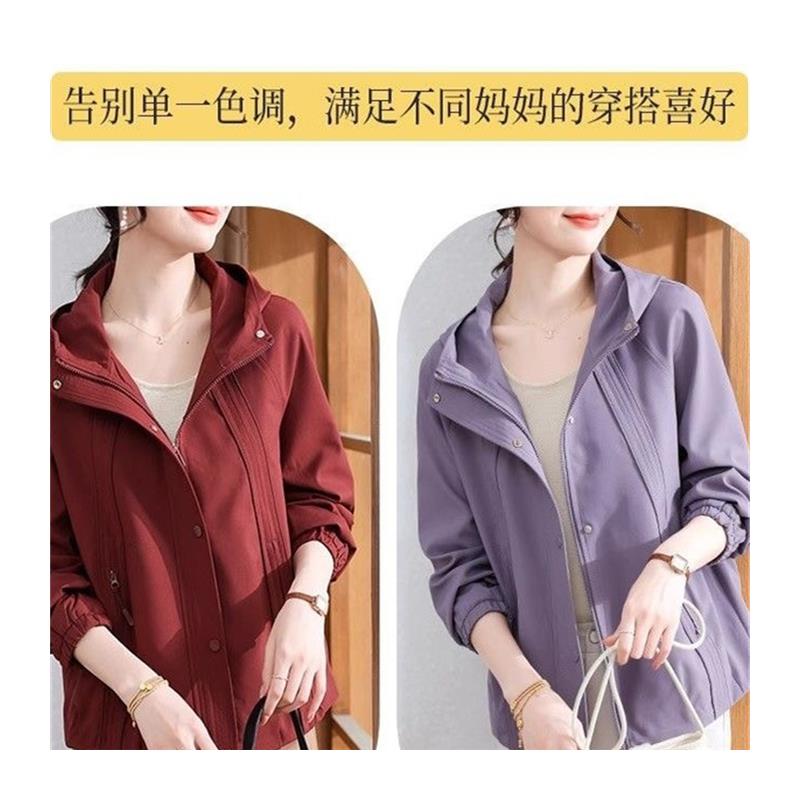 中年女装休闲百搭减龄时尚夹克上衣年轻妈妈春秋新款纯色连帽外套