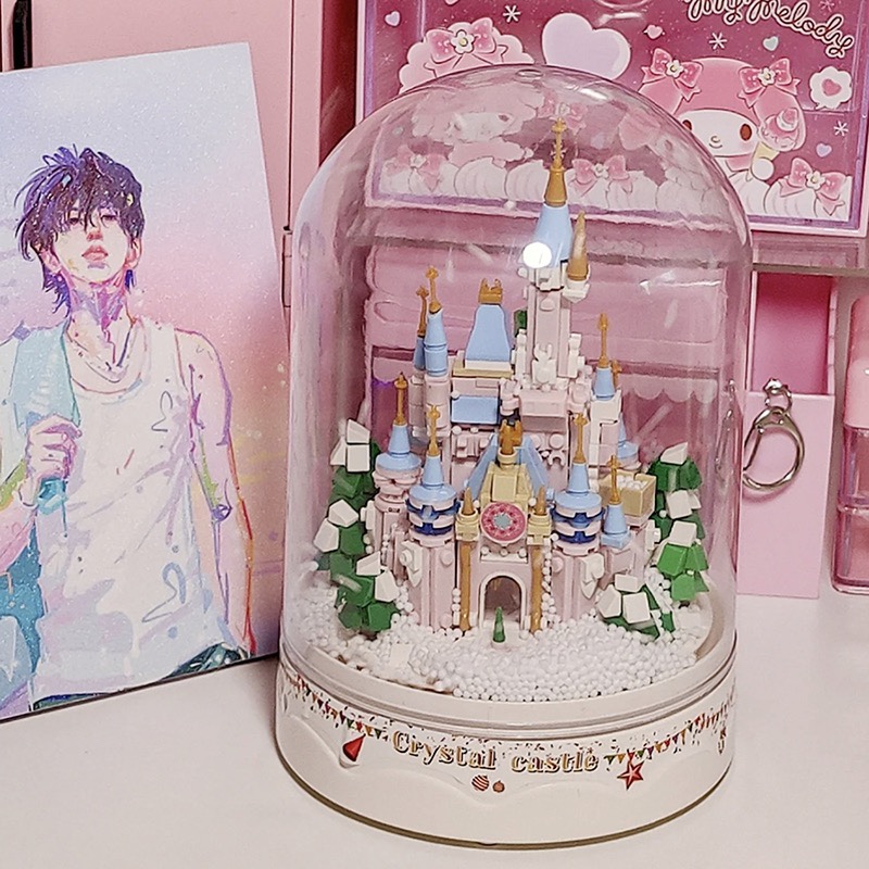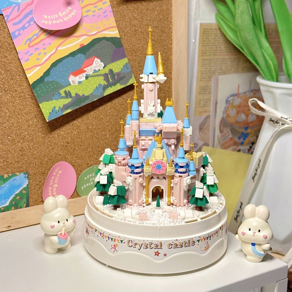 城堡积木音乐盒拼装八音盒公主迪士尼女生女孩拼图玩具生日礼物