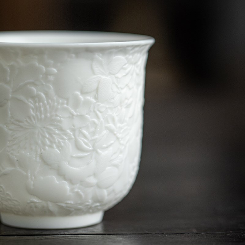 蔡新乔万花羊脂玉主人杯小茶杯个人女杯子盖碗女士品茗杯白瓷