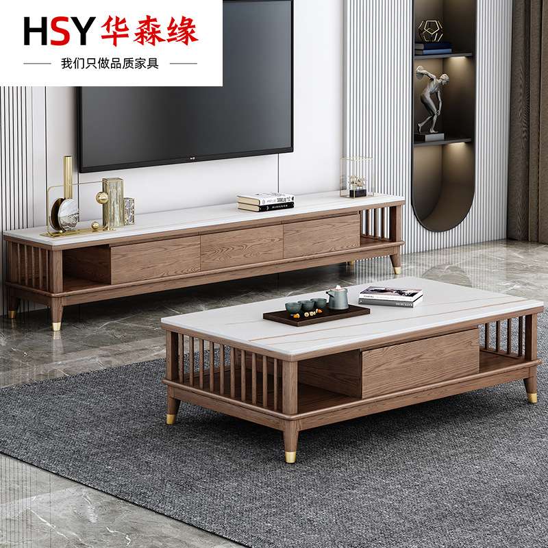 现代简约实木茶几电视柜组合小户型客厅茶几白蜡木茶几电视柜边柜