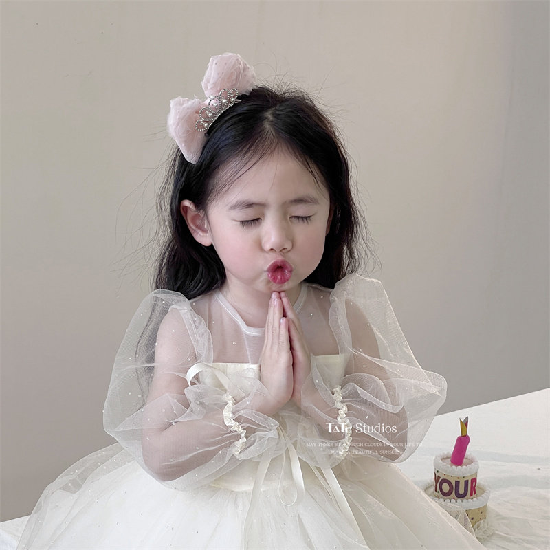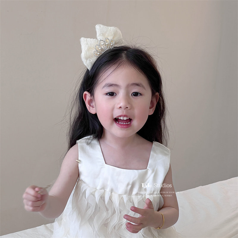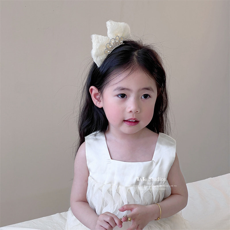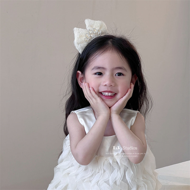 米色儿童公主皇冠发夹生日顶夹头饰女宝宝甜美波点立体蝴蝶结发卡