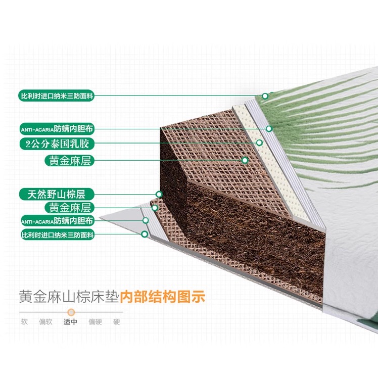 欢颜天然山棕床垫棕榈棕垫硬垫护脊椎家用厚20cm乳胶床垫