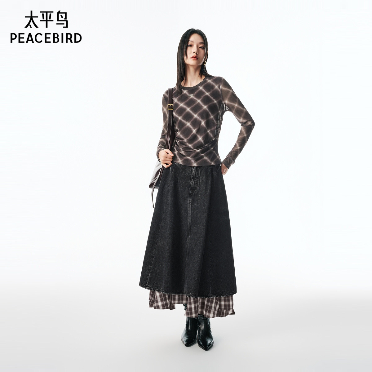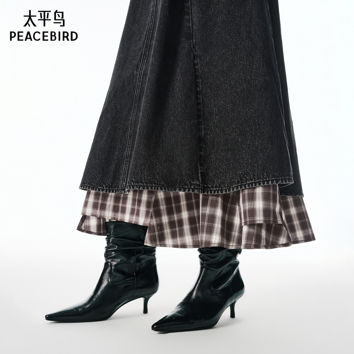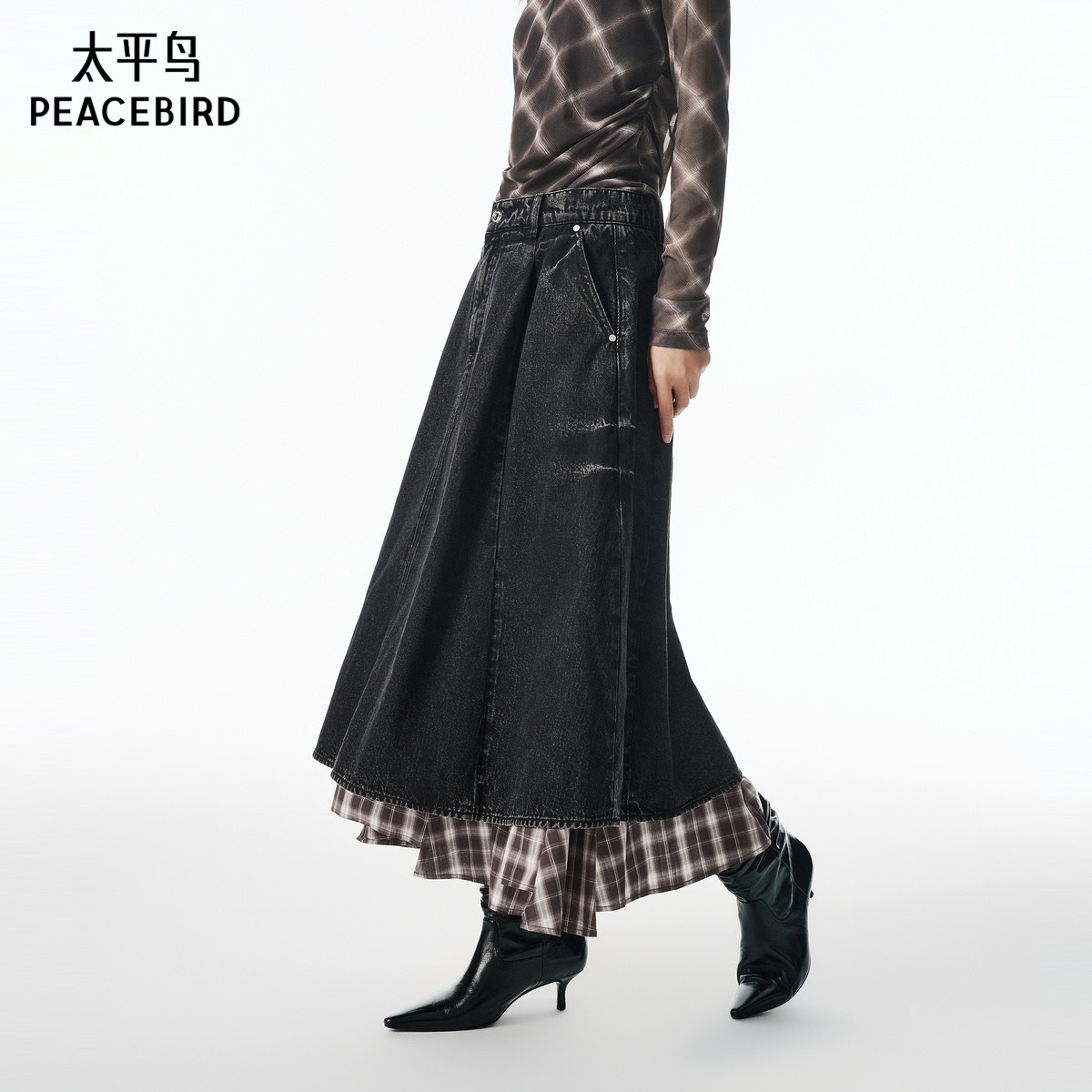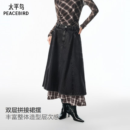 【商场同款】进口土耳其棉太平鸟牛仔长裙半身裙女蓝色A3HFF3237
