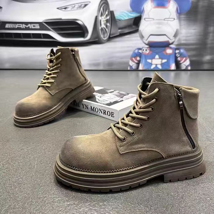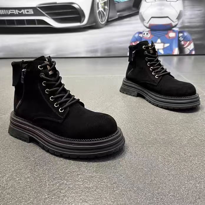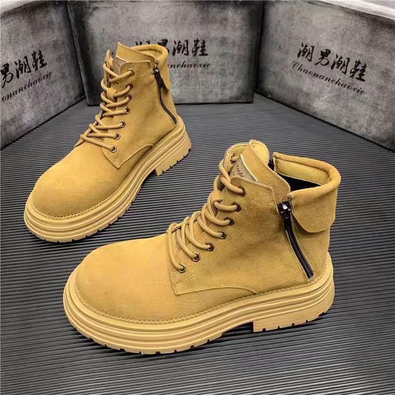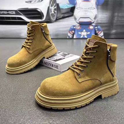 马丁靴男款秋冬真皮英伦风翻毛皮男鞋高帮潮流厚底增高复古大黄靴