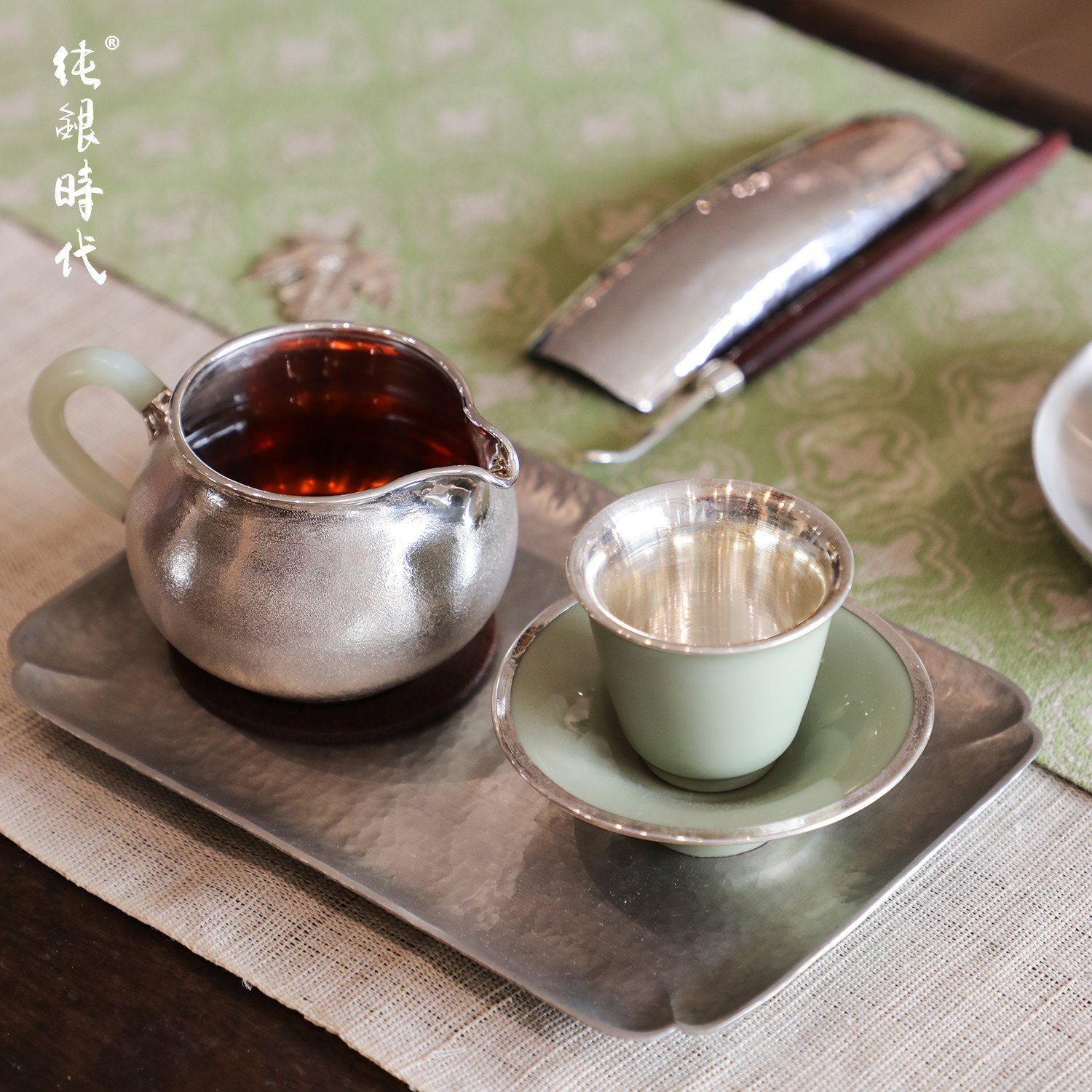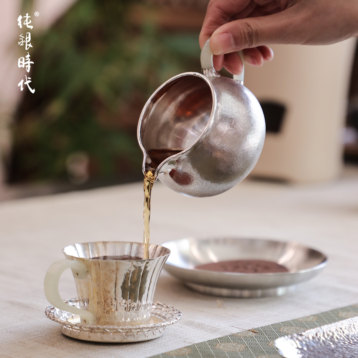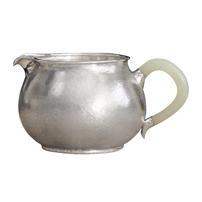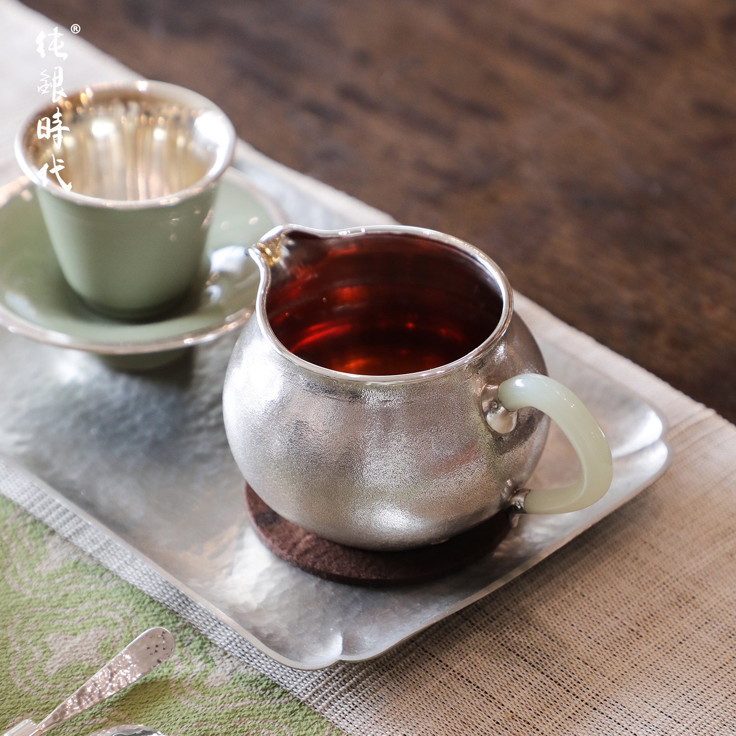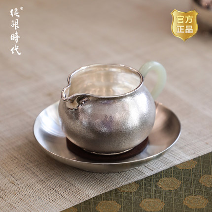 纯银时代 锤纹玉把公道杯足银999纯手工一张打分茶器220ml