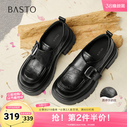 百思图2025秋季新款商场同款牛津鞋时尚学院风粗跟女单鞋BP221CM5