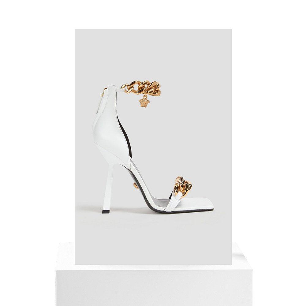1h可退 香港直邮Versace 范思哲 女士 Medusa 链条装饰皮质凉鞋 1