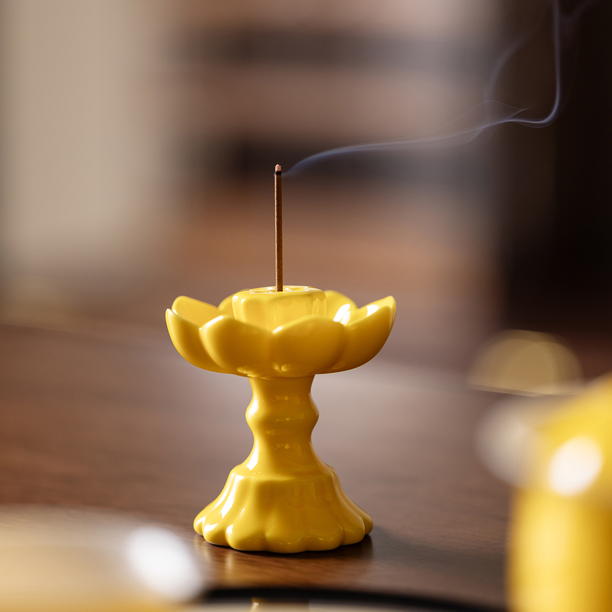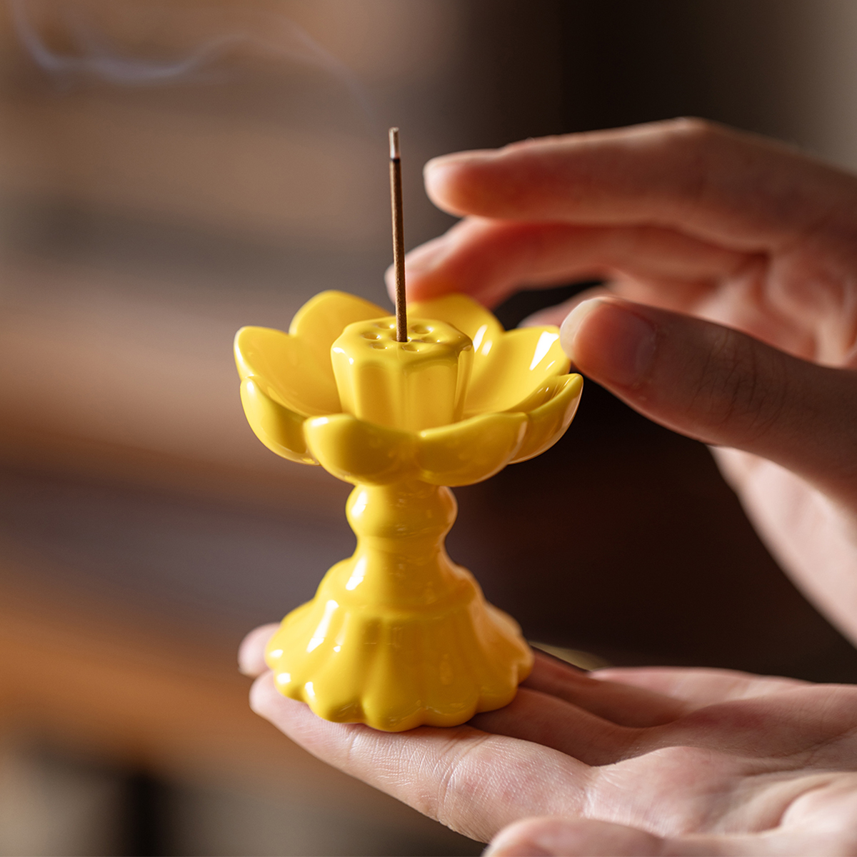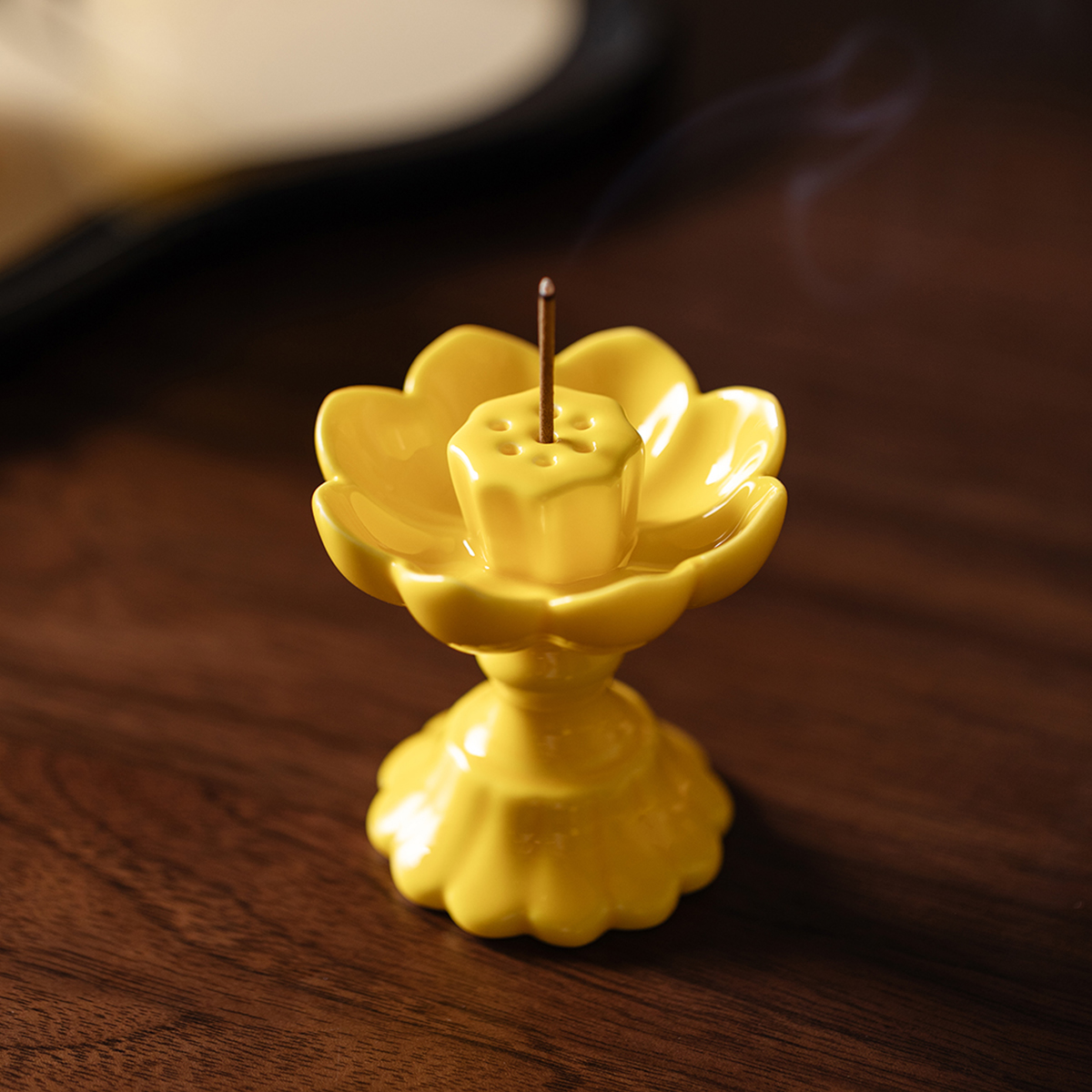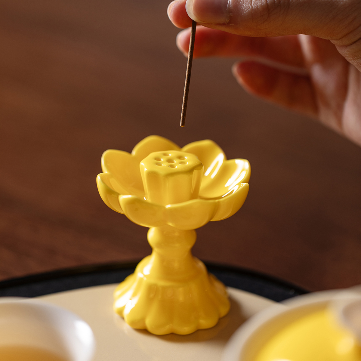 陶瓷莲花香插家用简约秋叶黄香炉桌面线香座立香盘禅意点香盘茶具