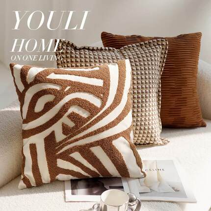 奶油色高级复古风打结抱枕套沙发床上棕色床上腰靠枕靠垫含芯飘窗