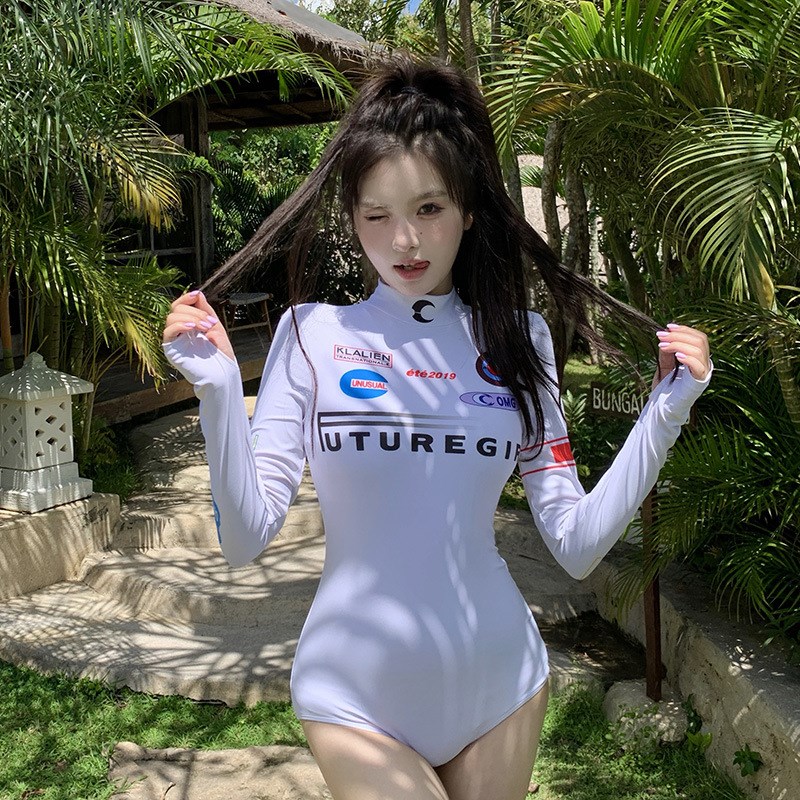 纯欲连体泳衣女长袖保守小胸聚拢遮肉显瘦沙滩潜水冲浪服度假泳装
