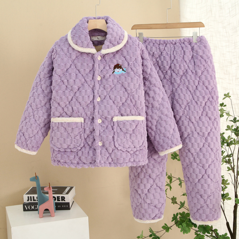 睡衣女冬季三层夹棉加绒加厚法兰绒保暖套装珊瑚绒外穿棉袄家居服