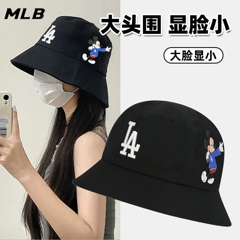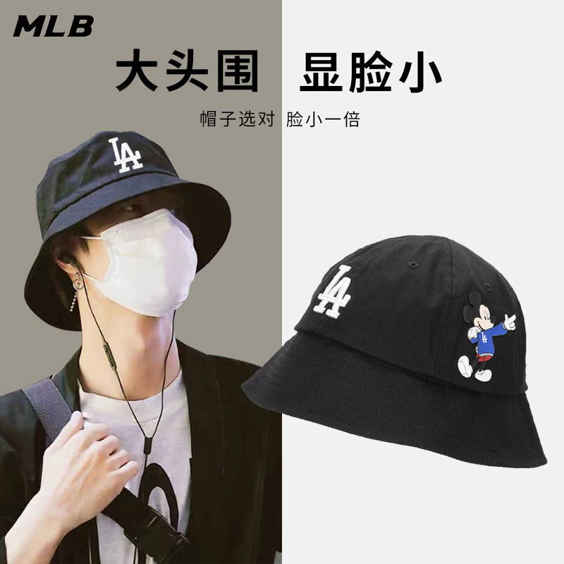 MLB渔夫帽男帽女帽新款运动帽黑色盆帽迪士尼联名户外遮阳帽子潮