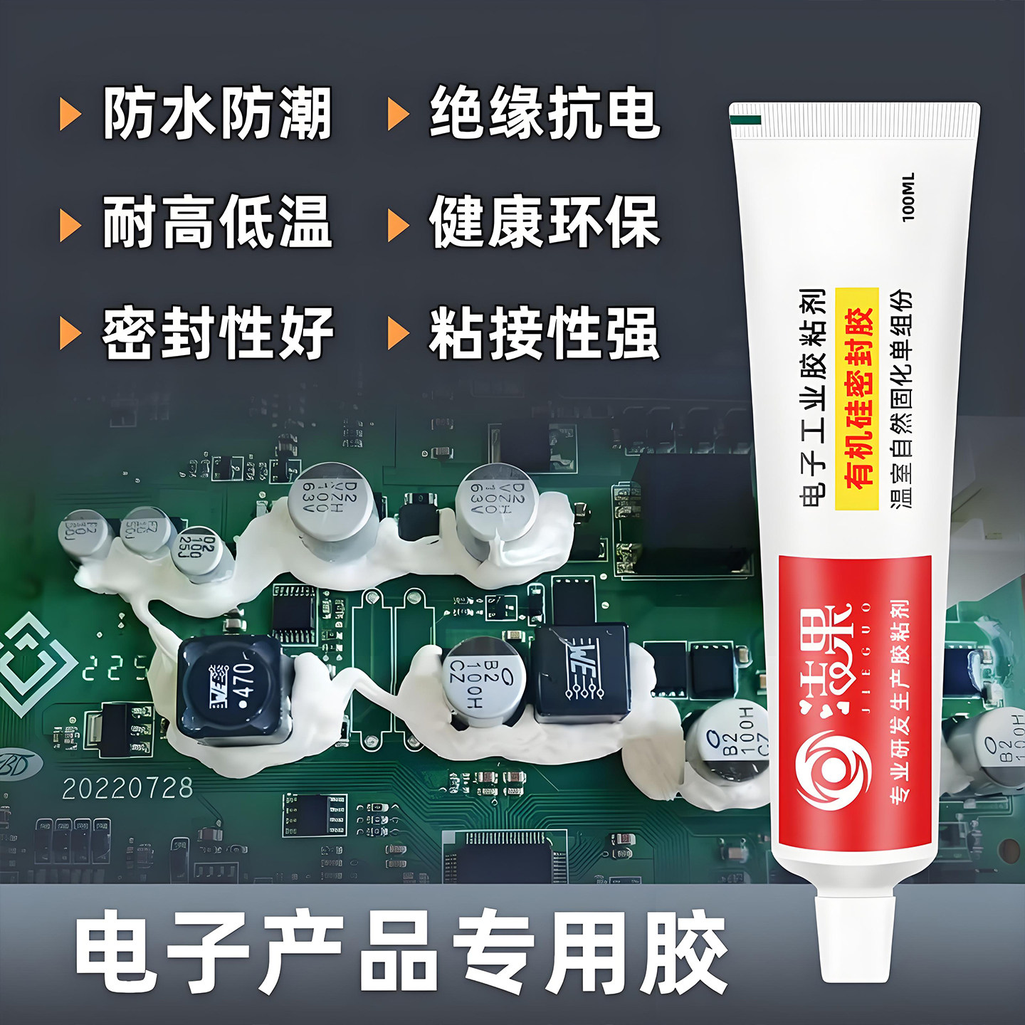 电子元件固定胶强力pcb电路板绝缘胶耐高温电子胶防水硅胶密封胶
