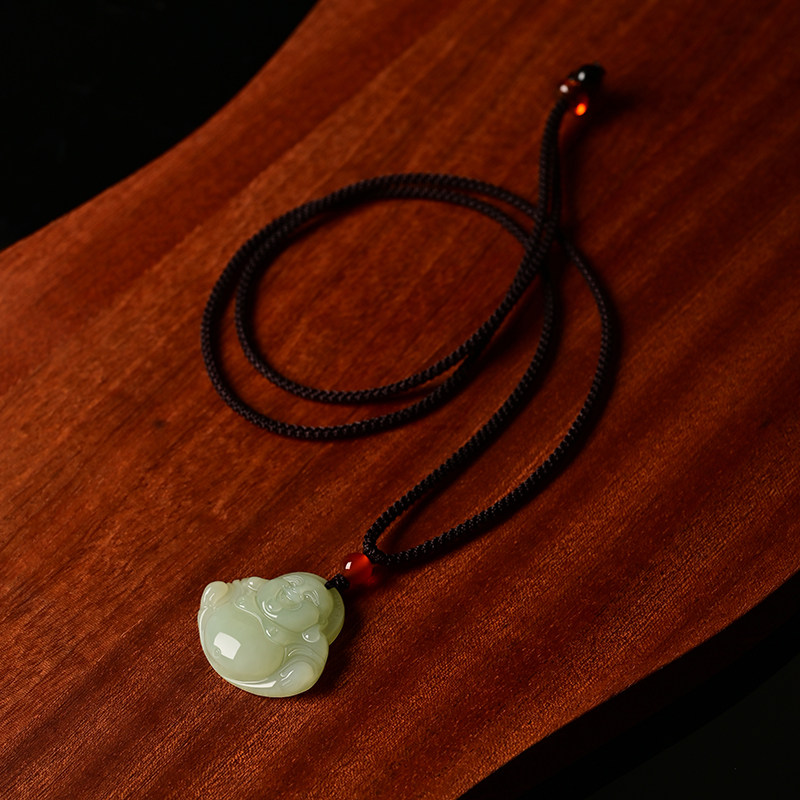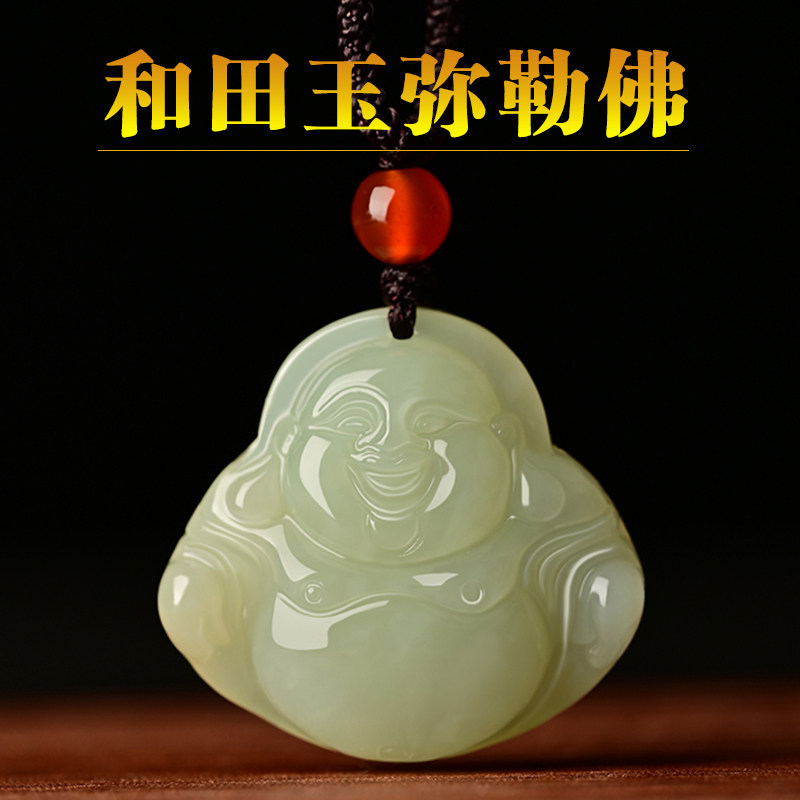 天然和田玉佛公笑佛古风礼物饰品弥勒佛吊坠男女款玉石挂件项链