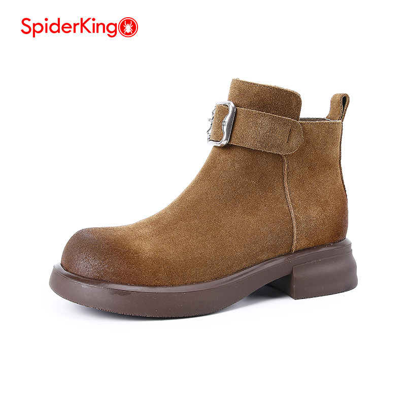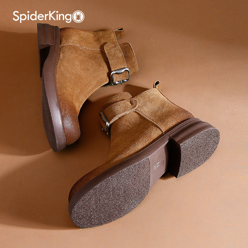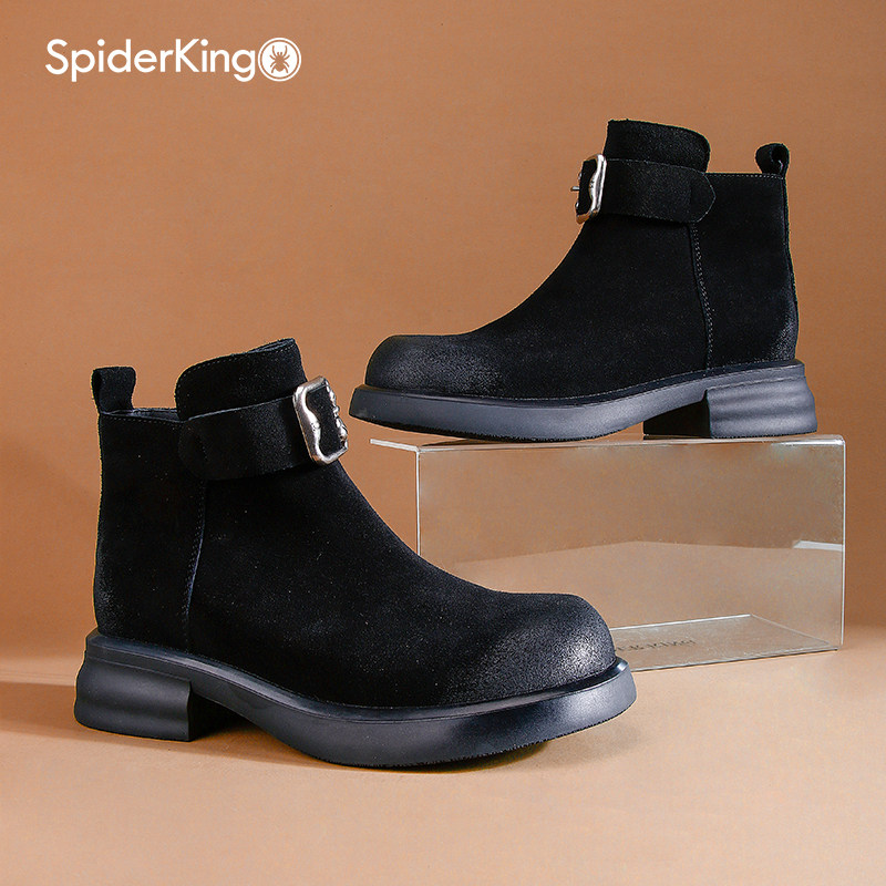 蜘蛛王女鞋2025秋季新款真皮中筒勃肯短靴女士厚底英伦风马丁靴女