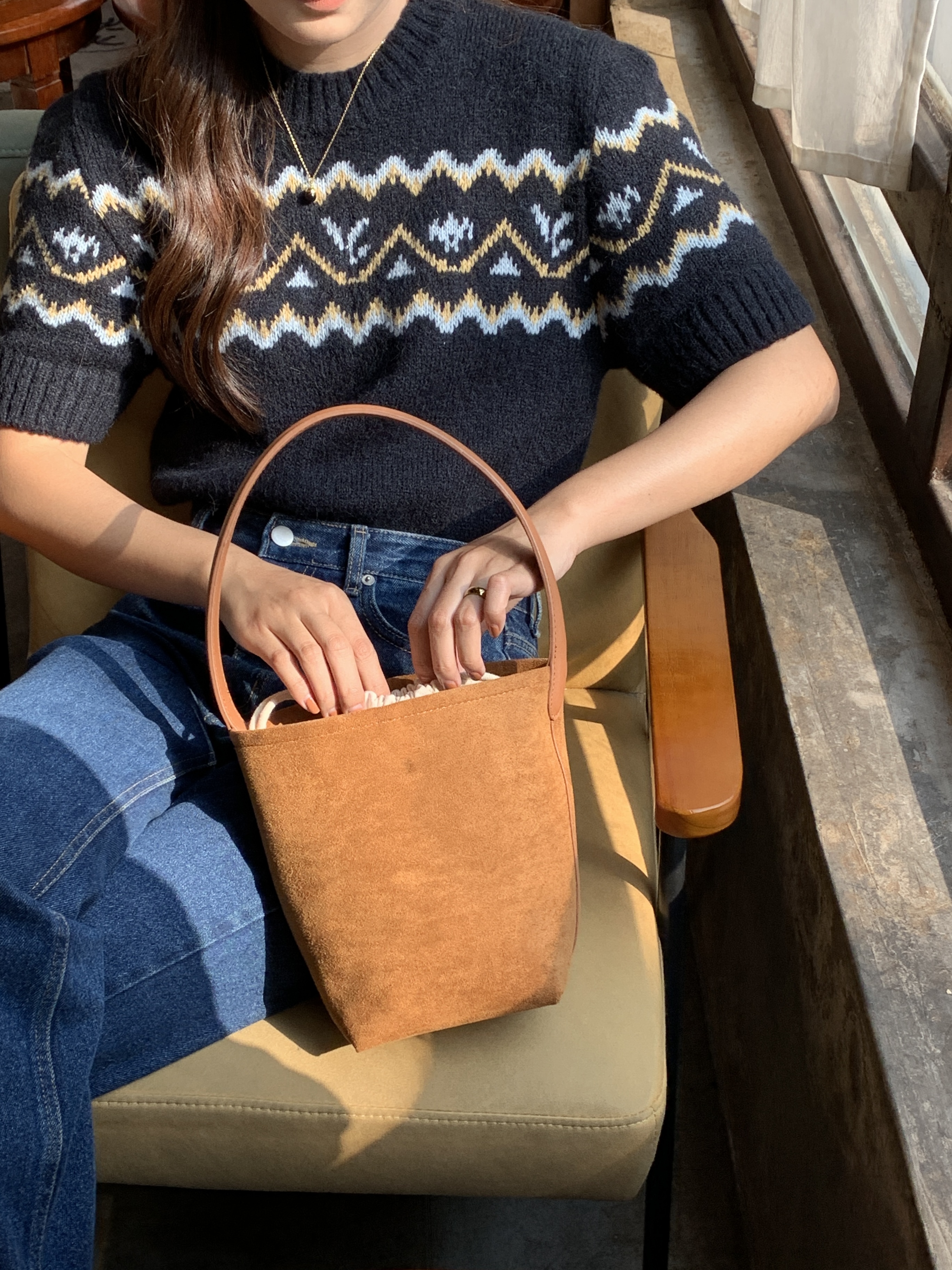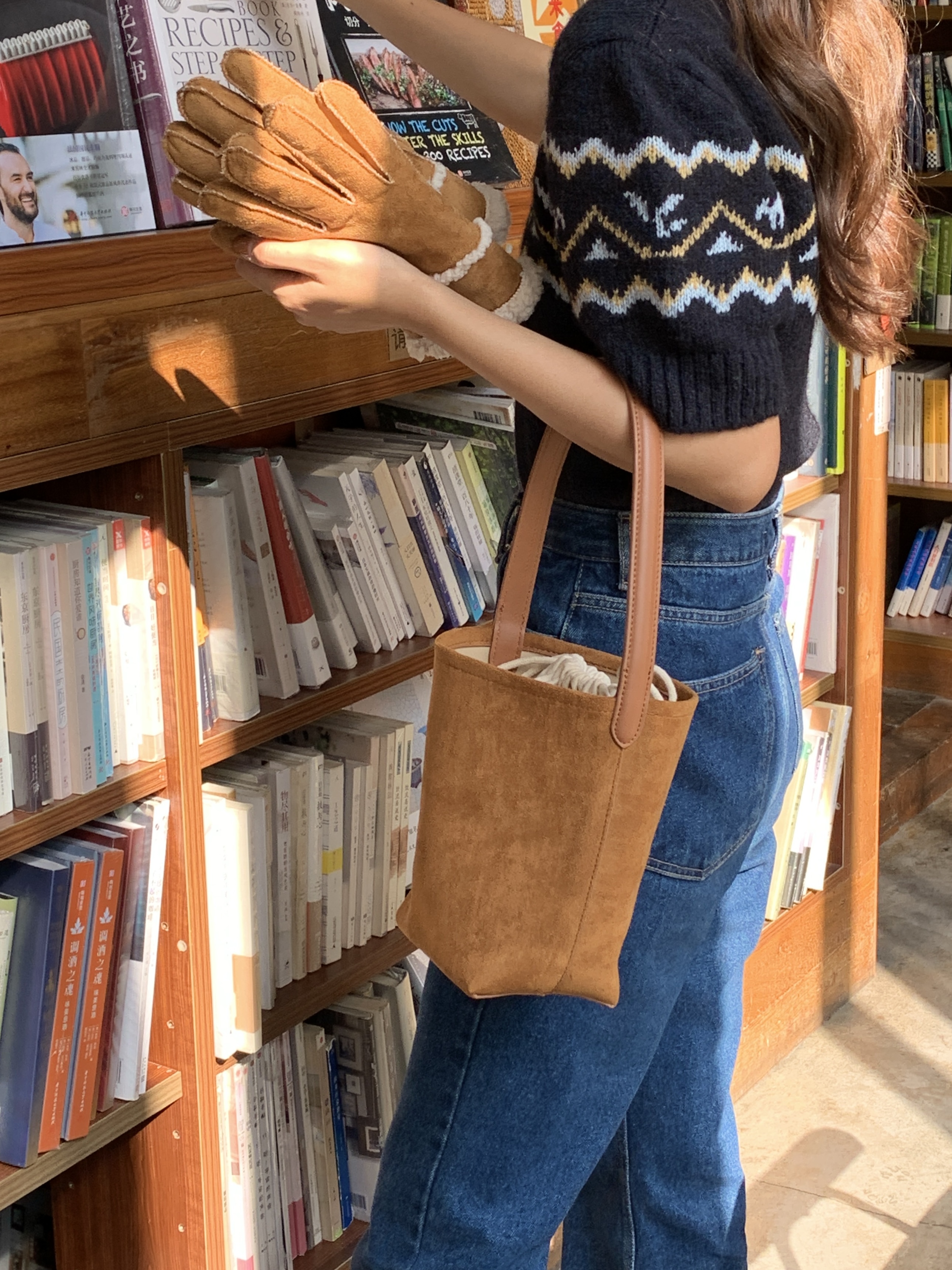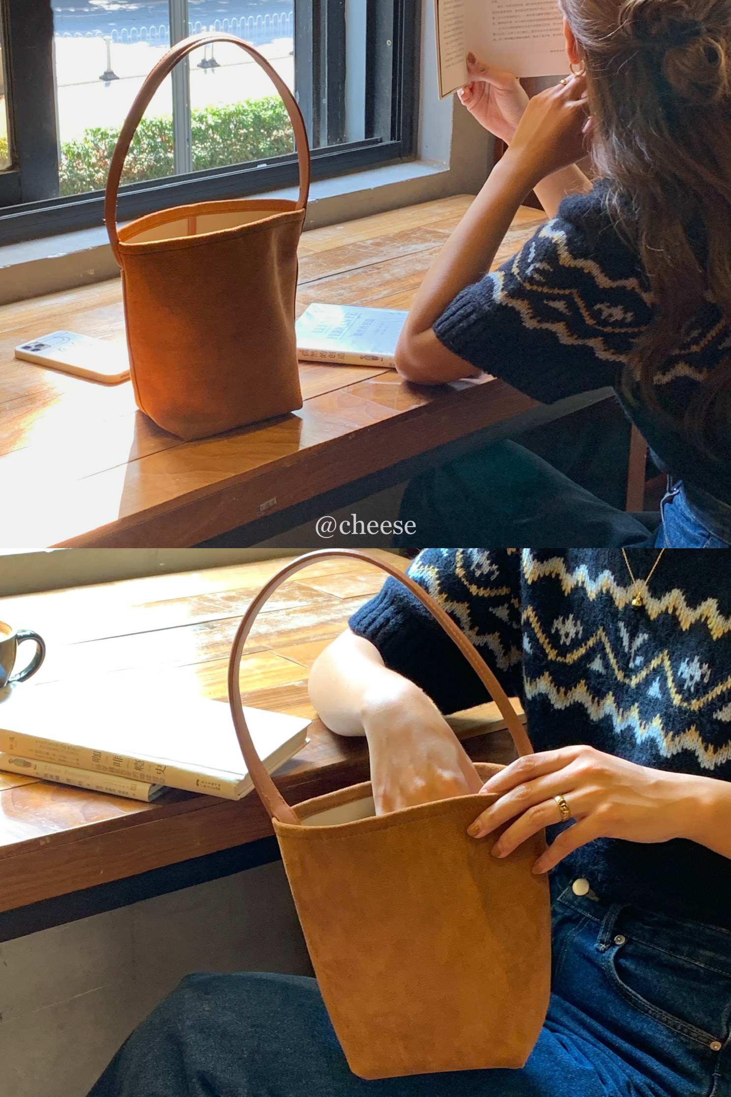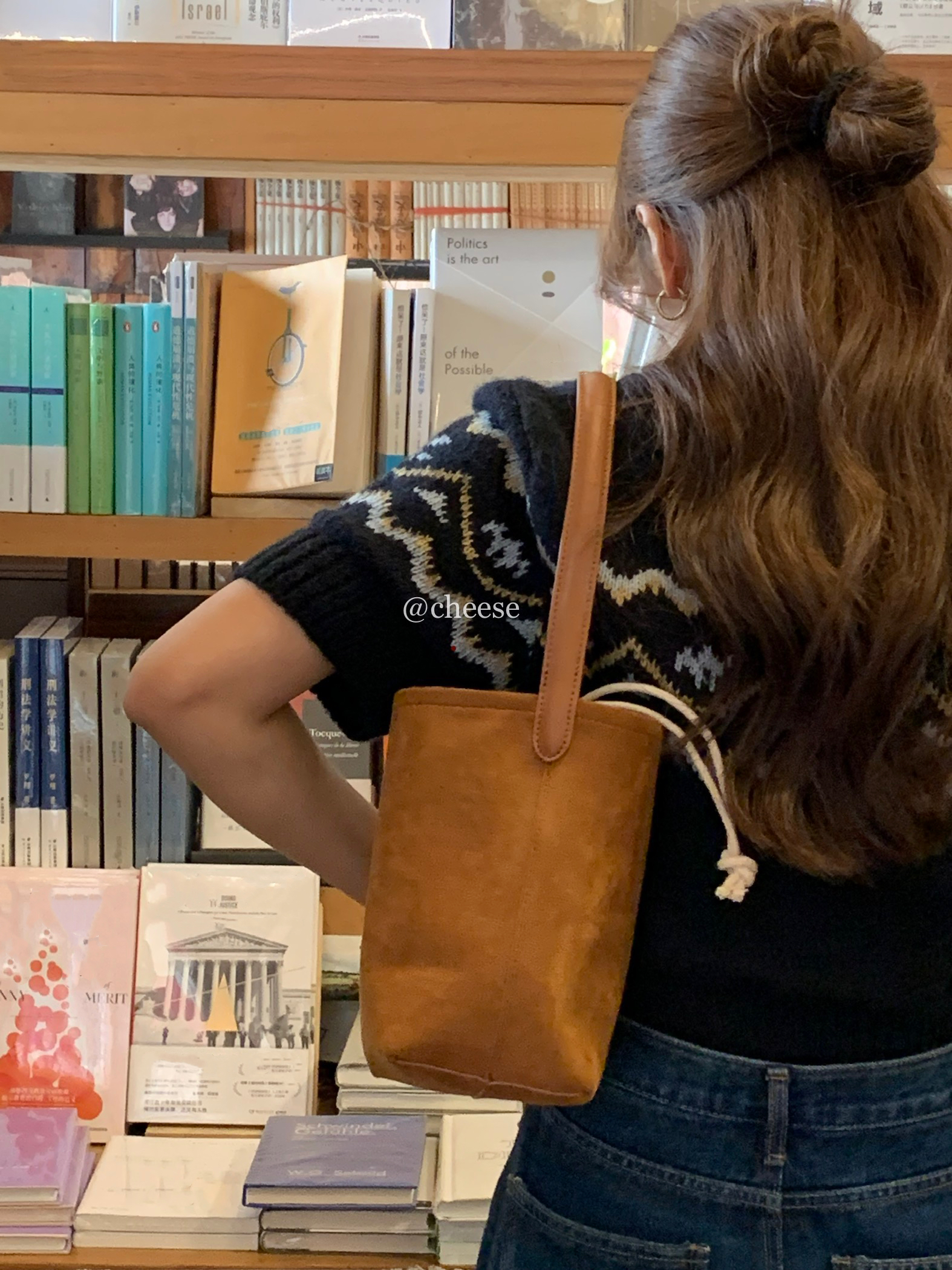芝士商店~棕色麂皮绒水桶包女秋冬小众单肩腋下包包高级感手提包