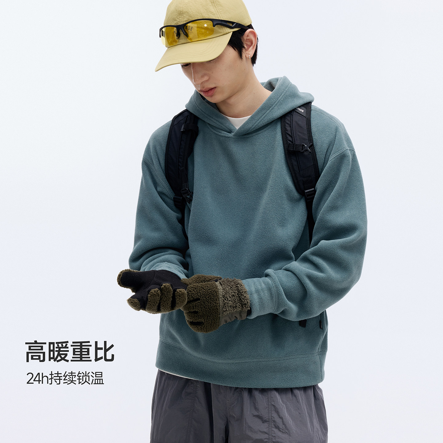 RESTICK Polartec摇粒绒抓绒保暖连帽卫衣帽衫 短宽廓形