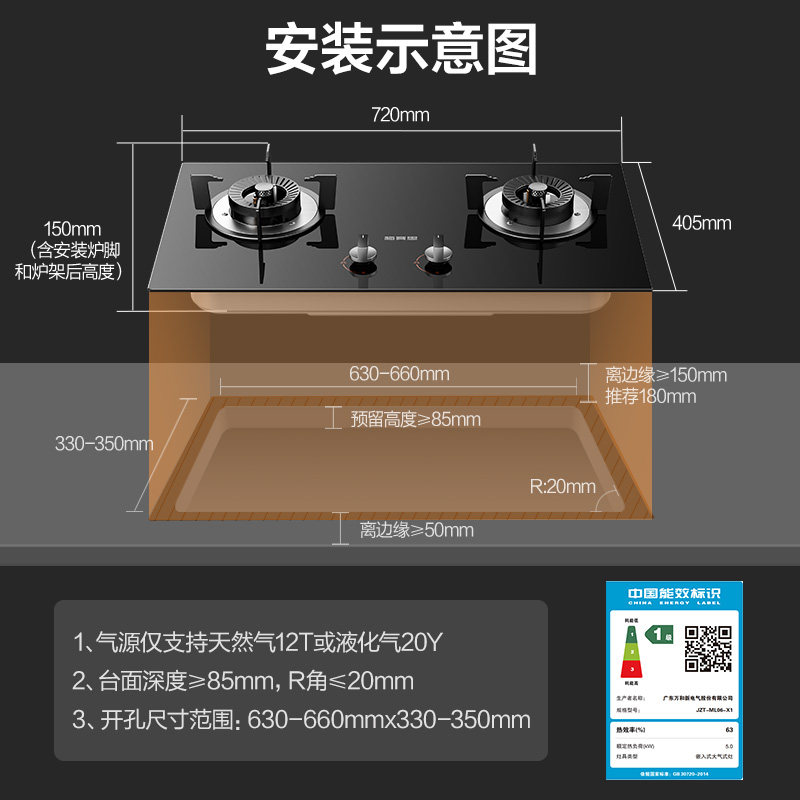 万和梅赛思燃气灶ML06-X1双灶天然气5.0KW液化气4.5KW台嵌灶具