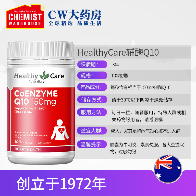 HealthyCare辅酶素Q10软胶囊成人中老年人心脏保护备孕保健品澳洲