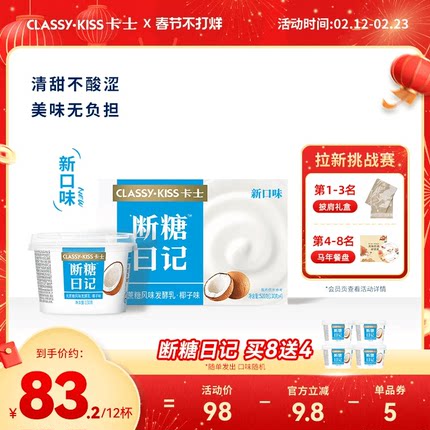 卡士酸奶断糖日记生椰酸奶无蔗糖低温酸奶营养早餐奶130g