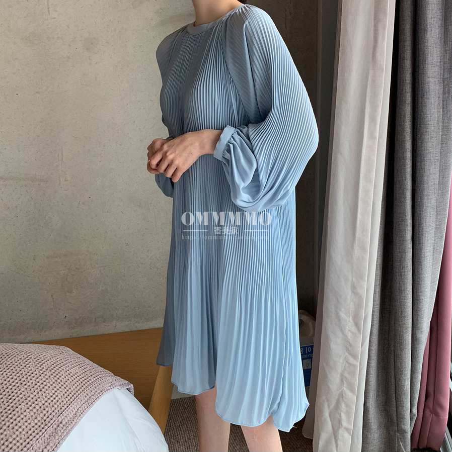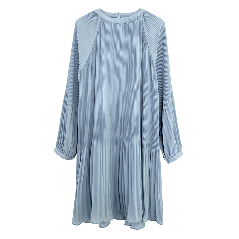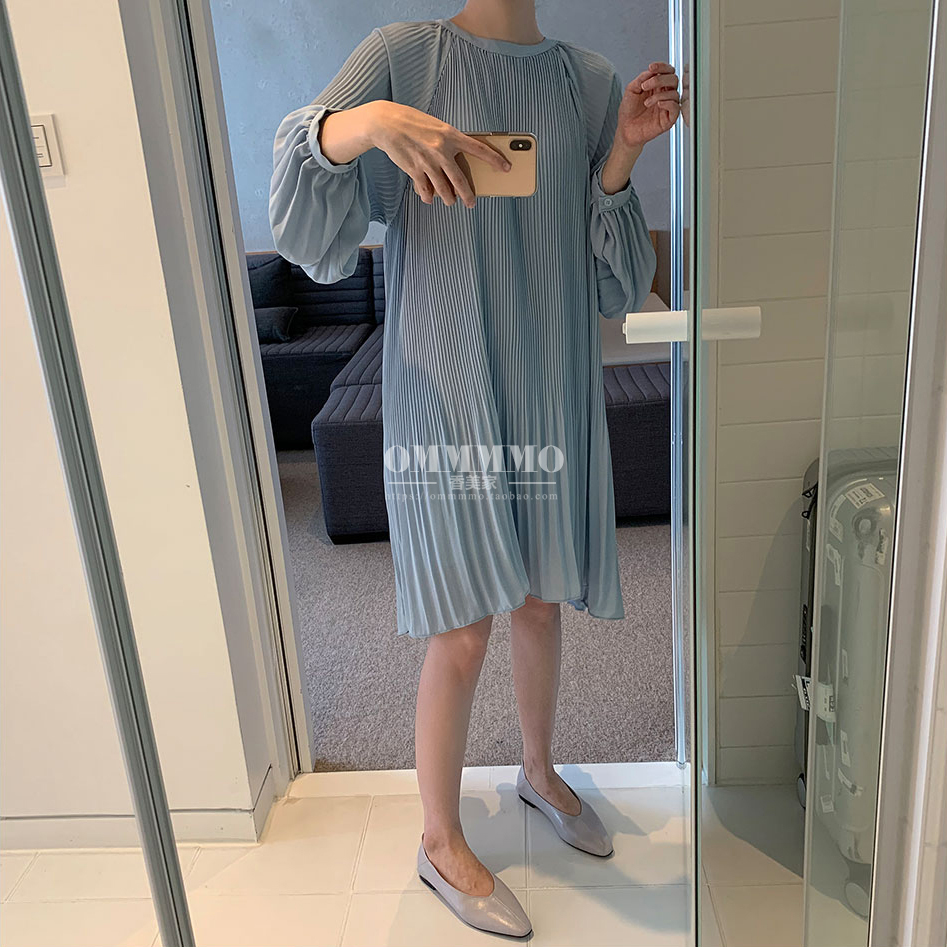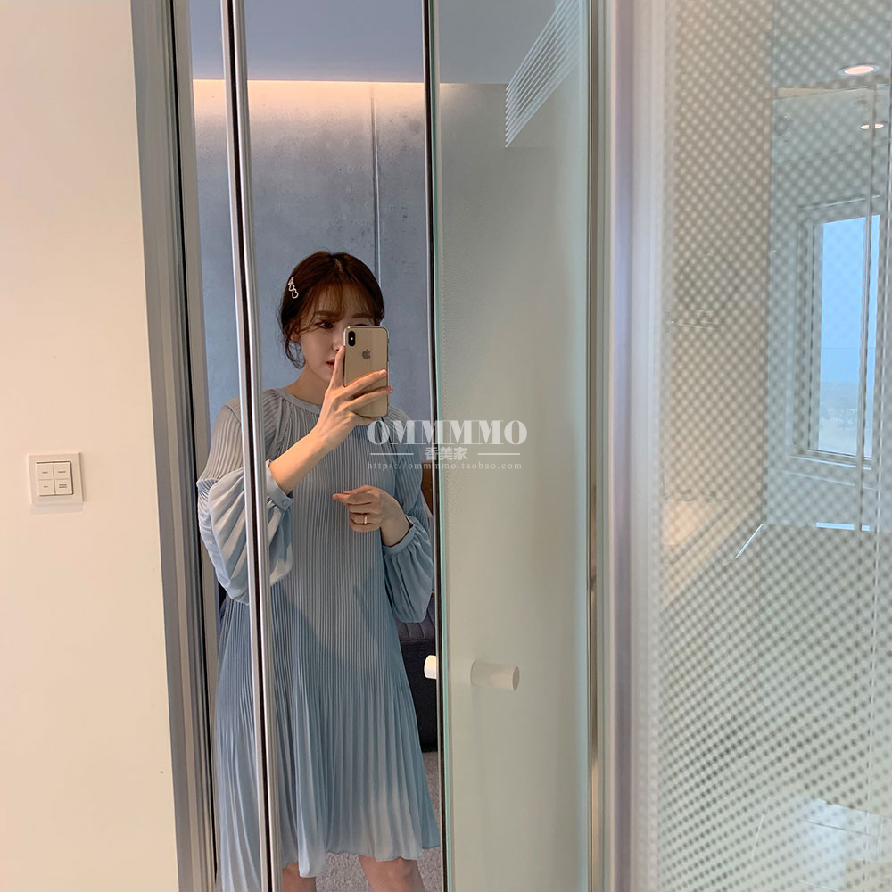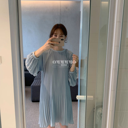 港味遮肚仙女裙2025夏新款气质显瘦褶皱连衣裙韩版长袖宽松百褶裙