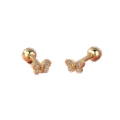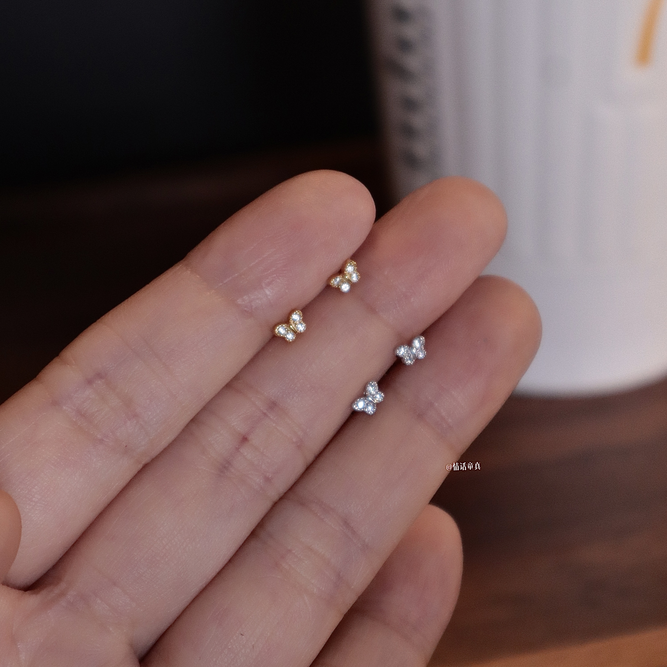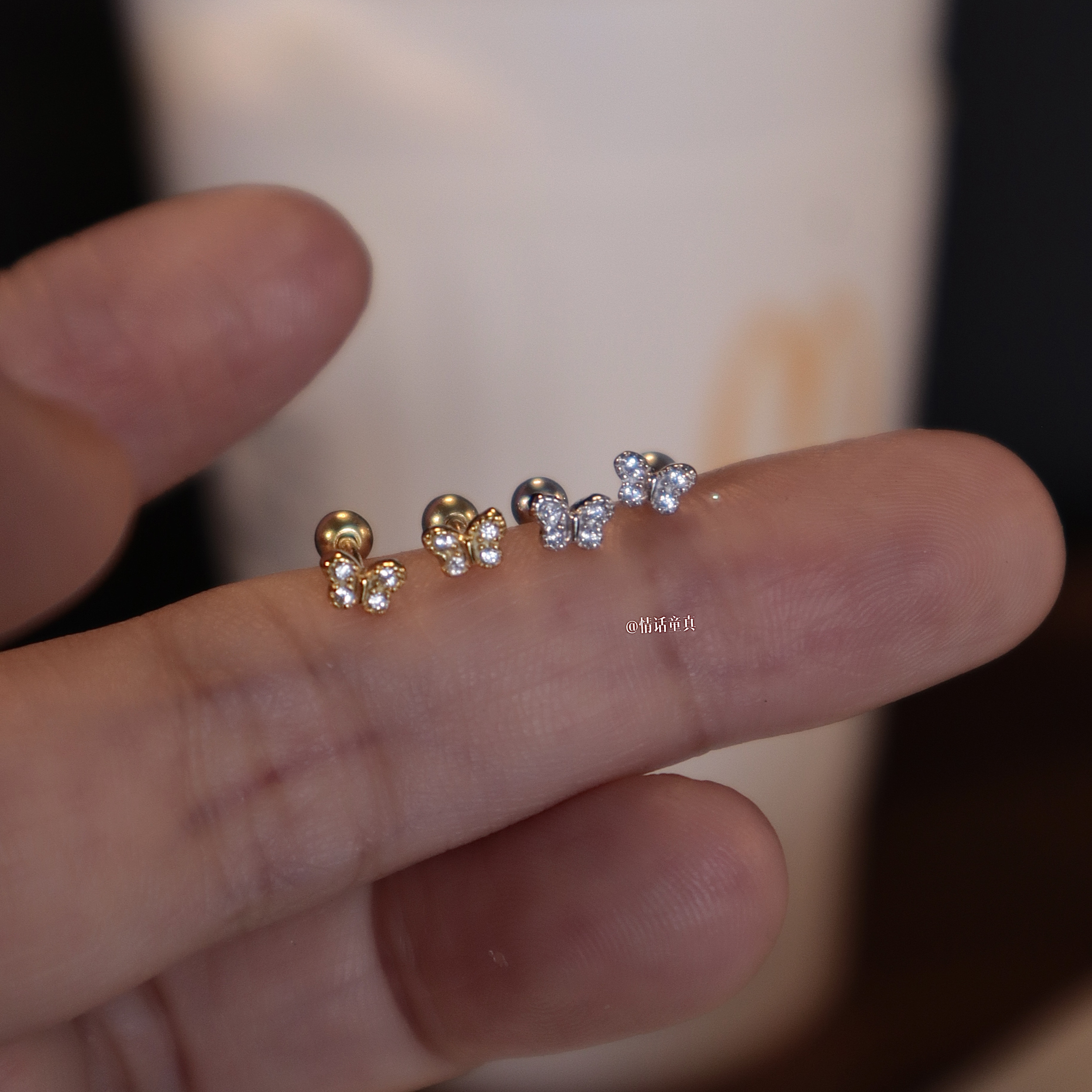睡觉不用摘超迷你螺纹耳钉养耳纯银镀金小蝴蝶拧螺丝极小耳骨钉女