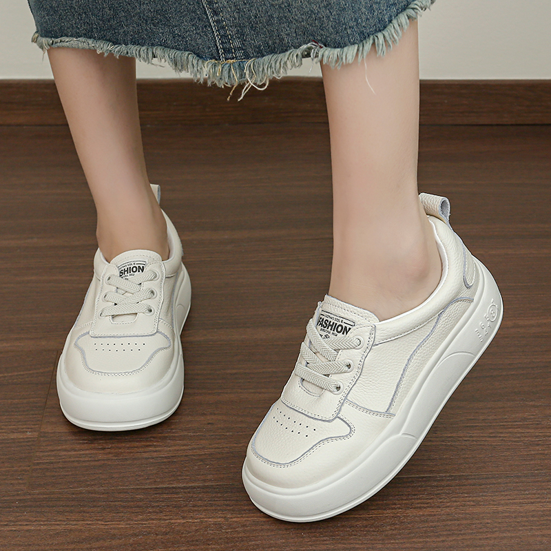 头层牛皮厚底小白鞋女夏一脚蹬轻便增高镂空女鞋运动休闲透气板鞋