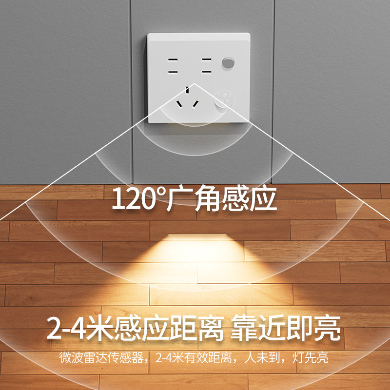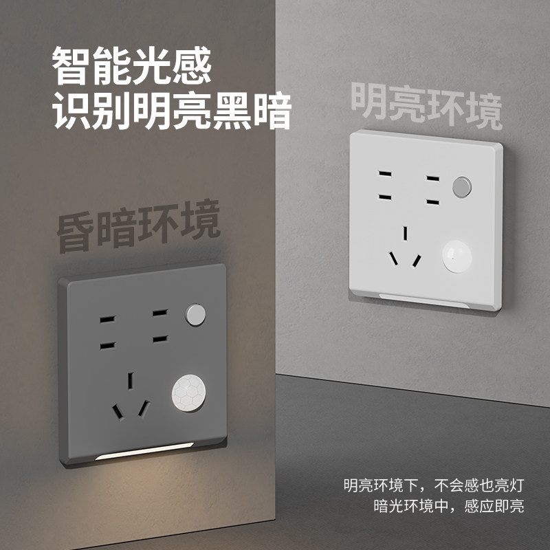 七孔五孔插座带人体感应地脚灯86型嵌入式暗装楼梯过道led小夜灯