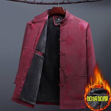 唐装中老年爸爸装男冬季加绒加厚棉服中国风外套爷爷老人衣服棉袄