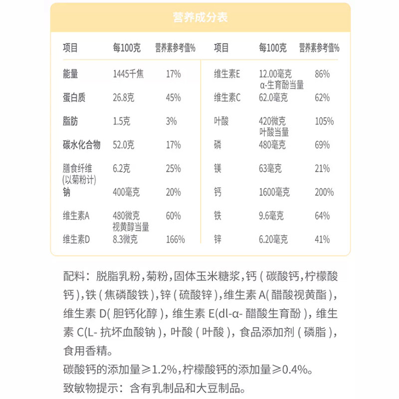 雀巢双钙脱脂奶粉高纤高钙女士成人牛奶粉盒装早餐冲饮送礼