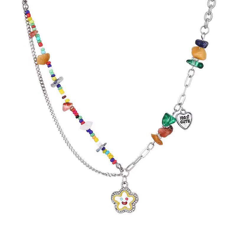 奥特莱斯品牌折扣店撤柜清仓捡漏彩色串珠笑脸项链锁骨链女配饰潮