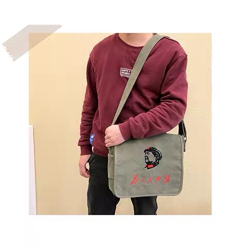 男包男单肩包刺绣五星斜挎包雷锋帆布包学生书包复古斜挎包潮包