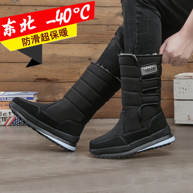 东北男士高筒雪地靴加厚保暖棉靴子冬高帮户外防滑长筒雪地棉大码