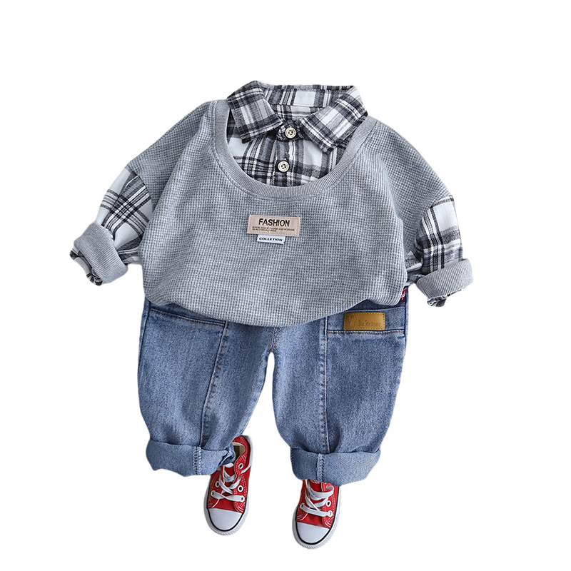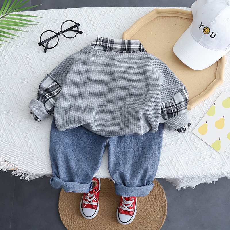 男童秋装套装2025新款衬衫假马甲小童裤子春秋两件套学院风套装