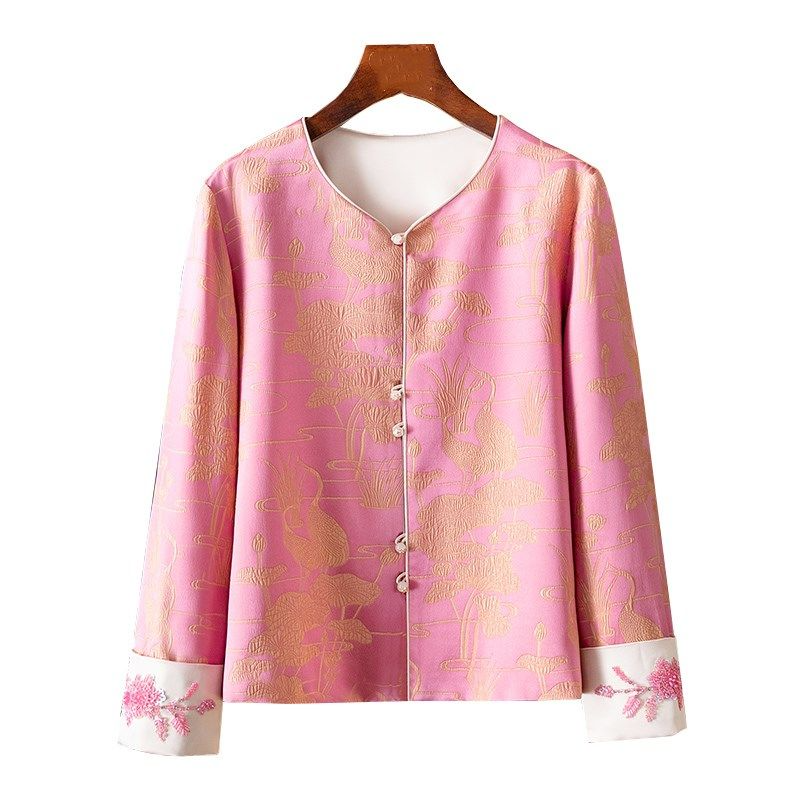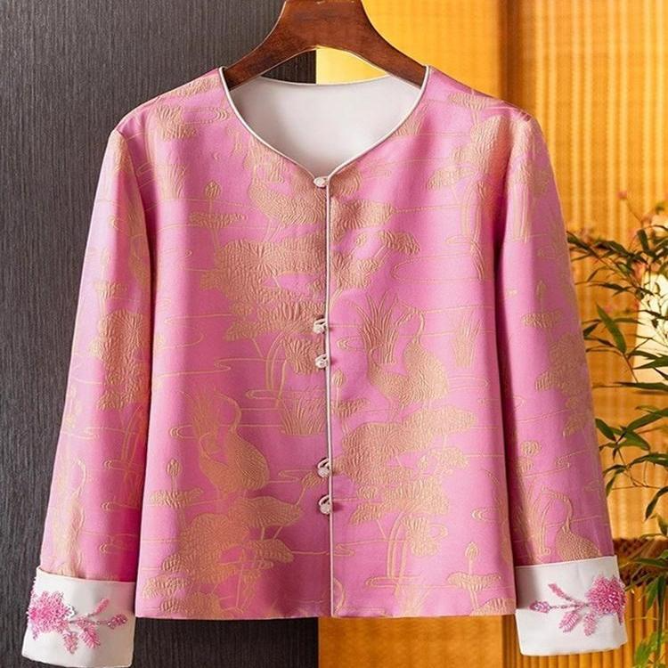 新中式外套春秋新款女装国风提花上衣女时尚减龄洋气小衫