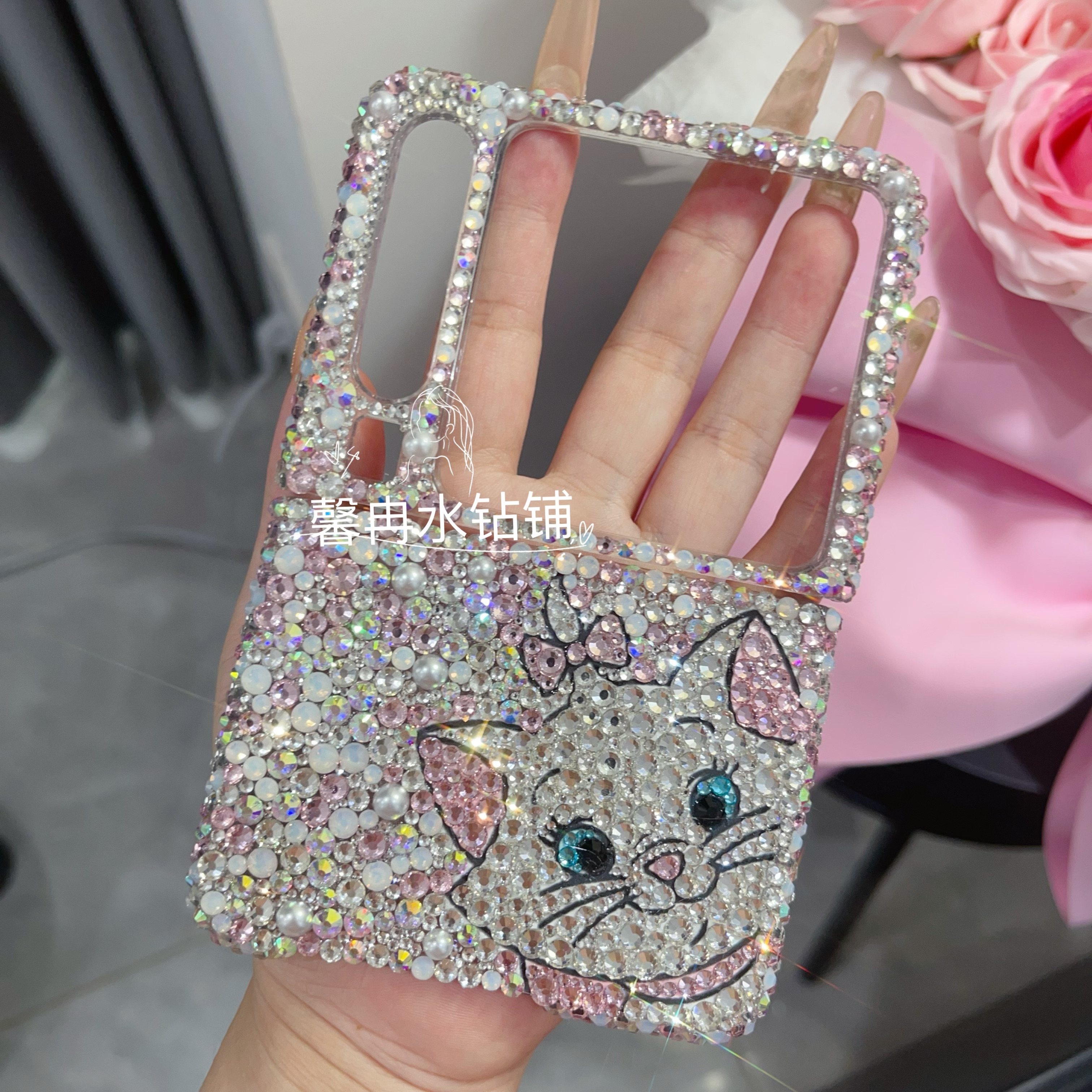 新款华为purax手机壳玛丽猫保护套水钻pruaX新款折叠套pocket2