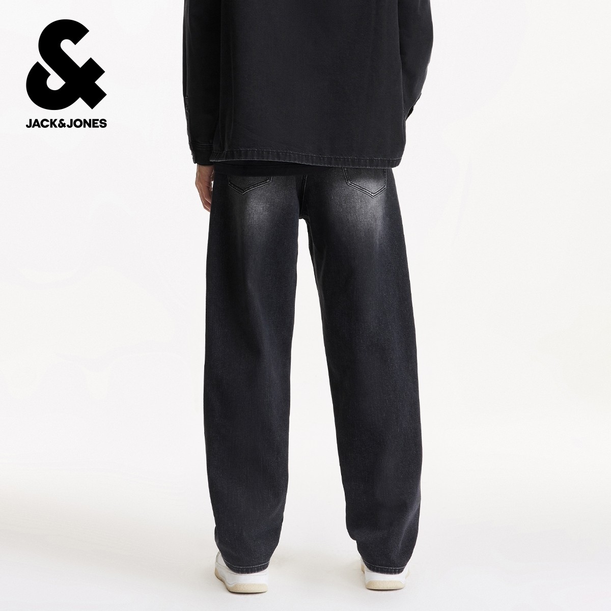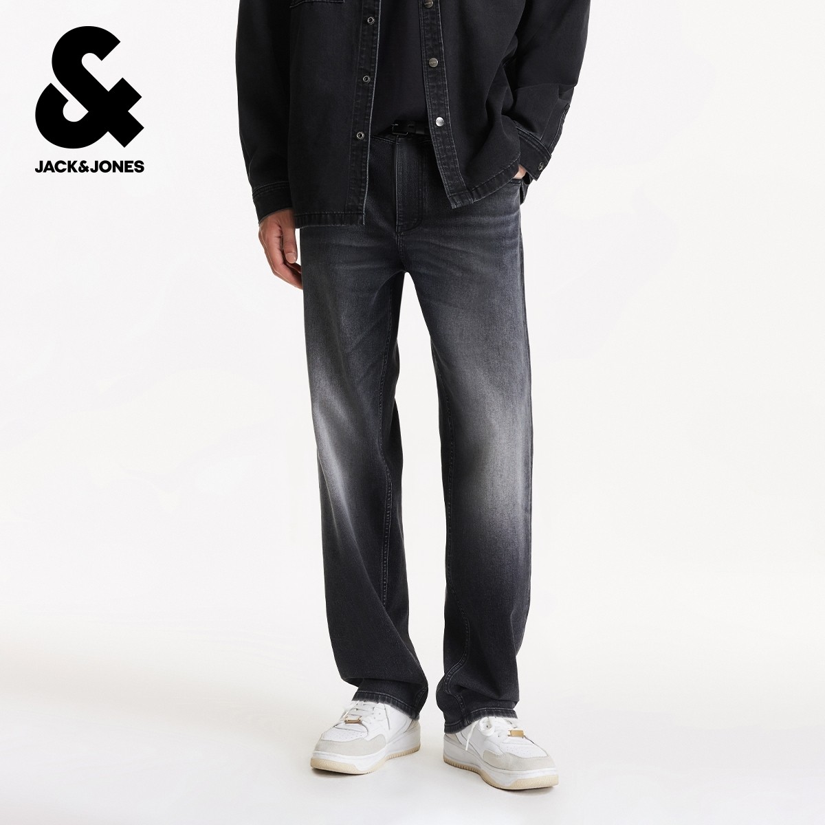 907杰克琼斯男装秋季新款水洗磨白廓形直筒深灰牛仔裤长裤子男款
