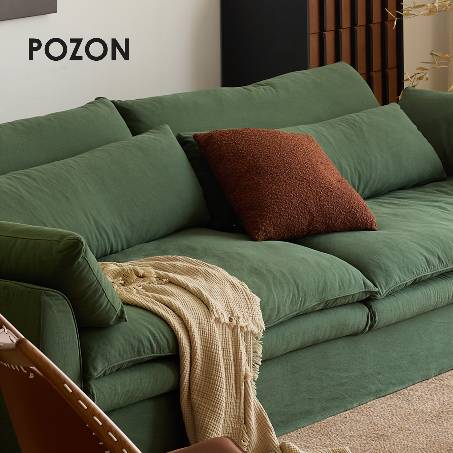 POZON朴琢/国风官绿风信子天然亚麻沙发侘寂风布艺棉麻可拆洗奶油