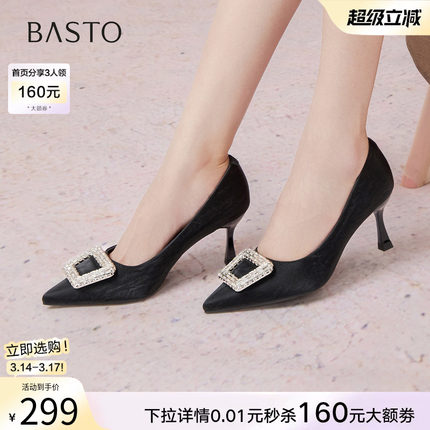 百思图春秋新款商场同款单鞋时尚细高跟尖头浅口女鞋F3318CQ5