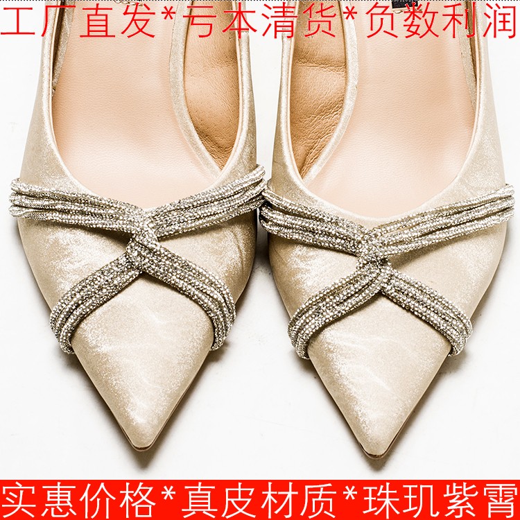 撤柜真皮鞋子闪闪单鞋尖头细高跟水钻浅口性感欧美时尚SS23111091