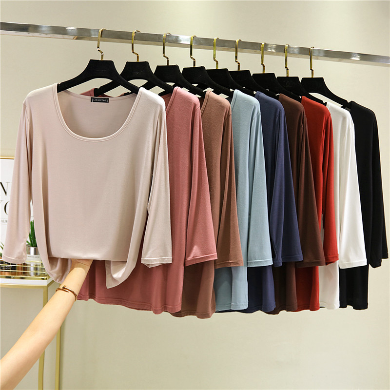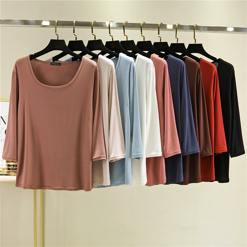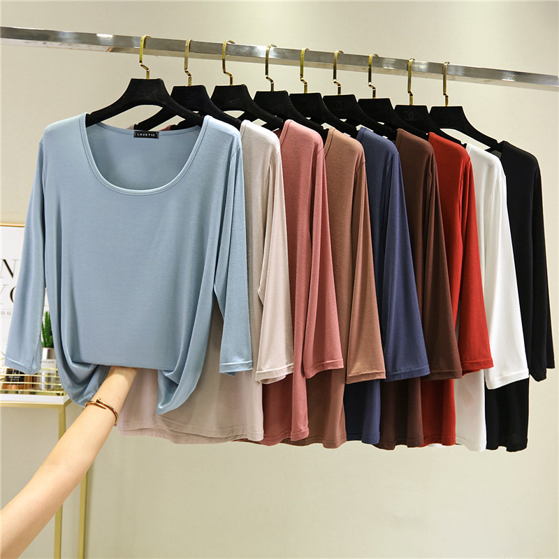 莫代尔长袖t恤女夏2020年新款宽松上衣女大码睡衣薄打底衫七分袖