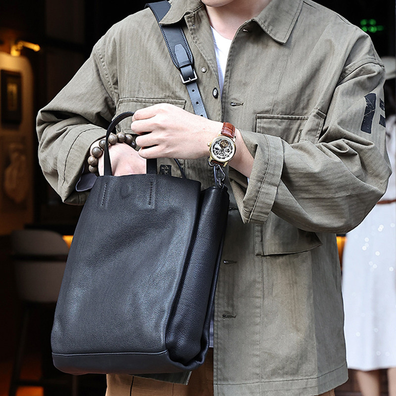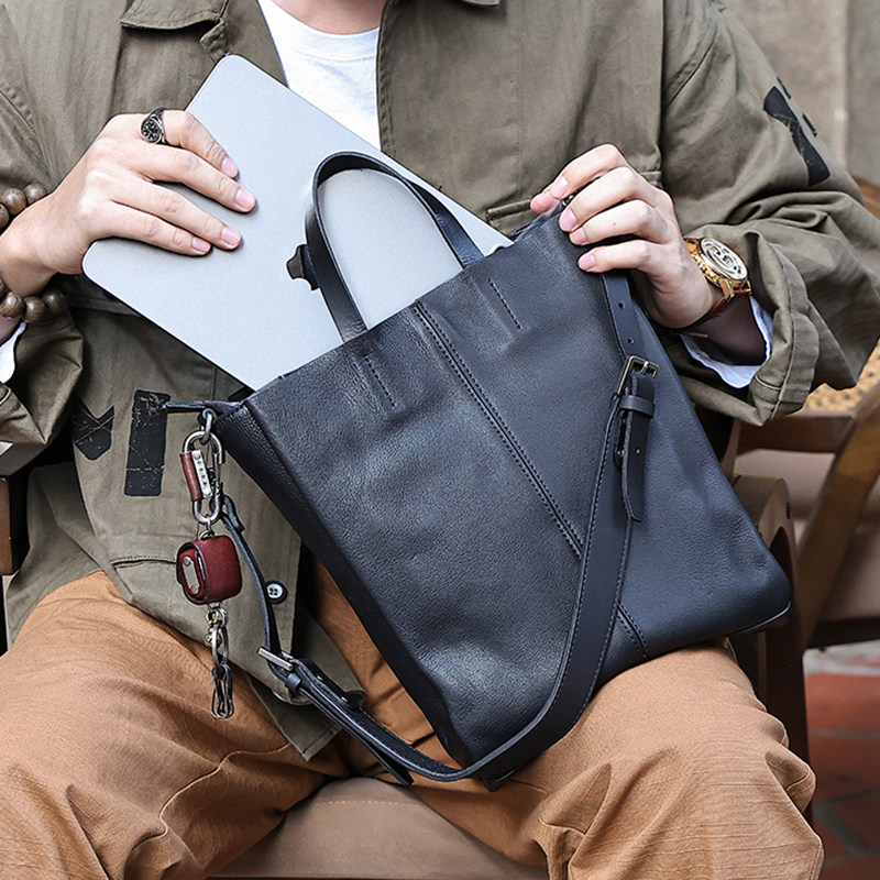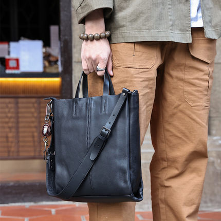 玩爷真皮男士单肩包头层牛皮商务背包休闲潮流托特包大容量手提包