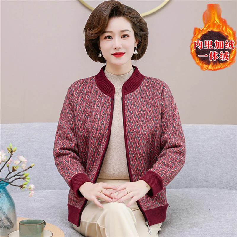 中老年人冬装毛衣外套女奶奶加绒开衫衣服老太太加厚60岁秋冬上衣