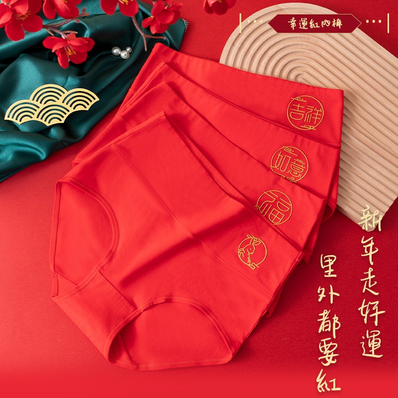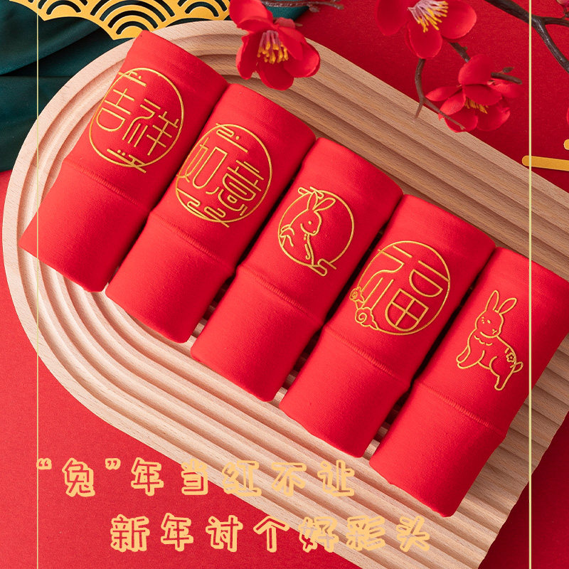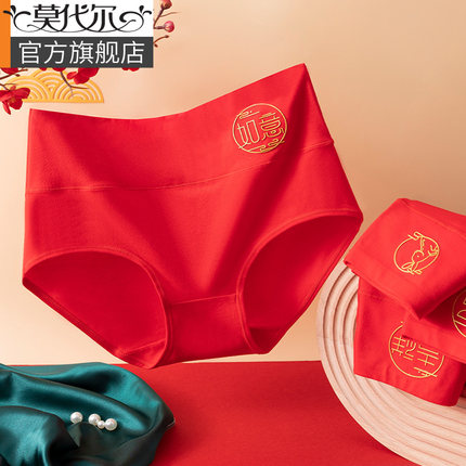 本命年大红色内裤女纯棉新娘结婚礼物马年高腰中腰女士三角短裤头