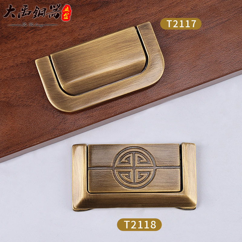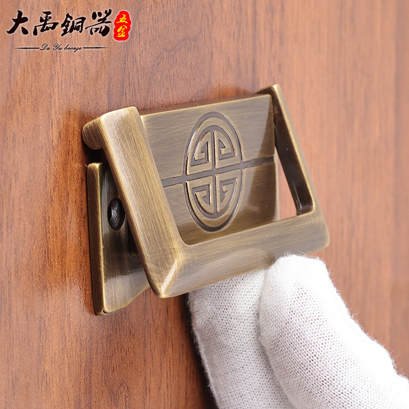 纯黄铜新中式抽屉衣柜门把手仿古明装柜子床头柜橱柜打孔平拉手小