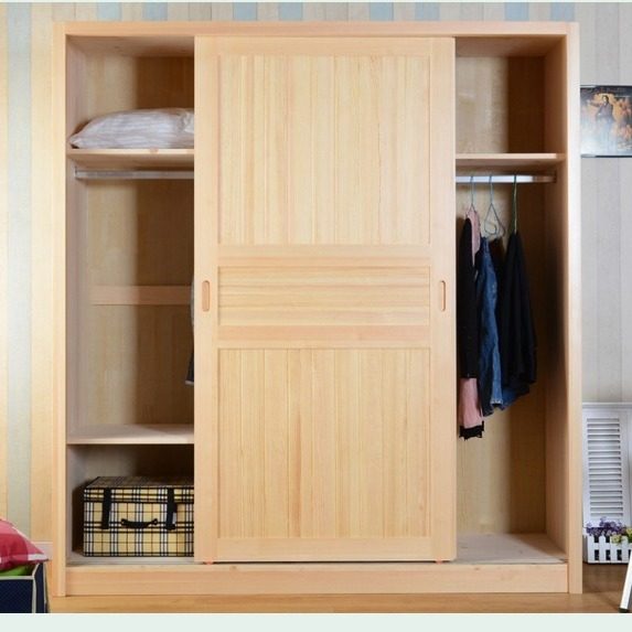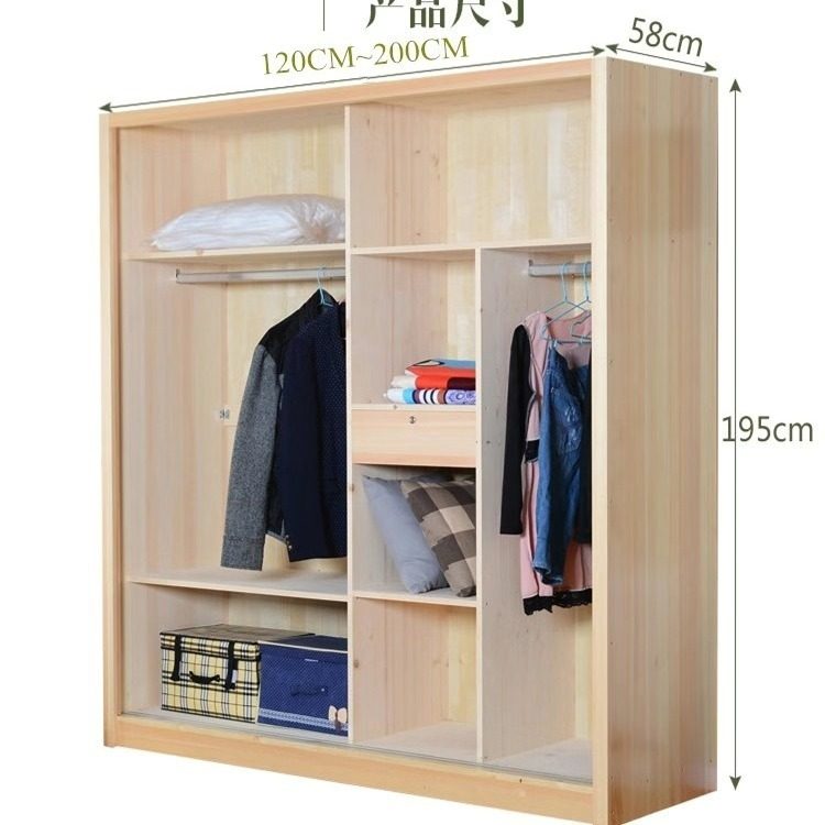 可定制简约现代全实木衣柜推拉门环保新西兰松木衣橱移门木质卧室