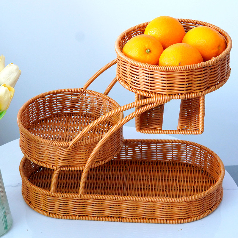 仿藤编中式多层水果架创意置物架