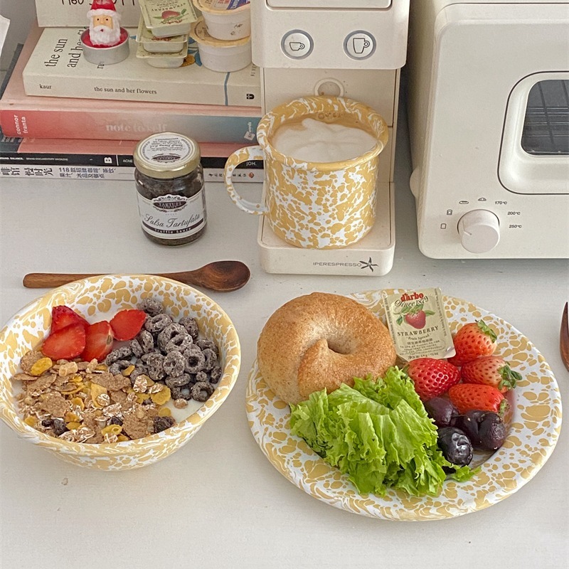 阿宝-ins复古泼墨搪瓷餐具珐琅餐盘沙拉麦片碗咖啡马克杯沙拉碗