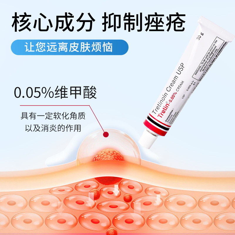 进口tretinoin维a酸维甲酸乳膏50mg*30g软膏祛痘改善痤疮皱纹扁