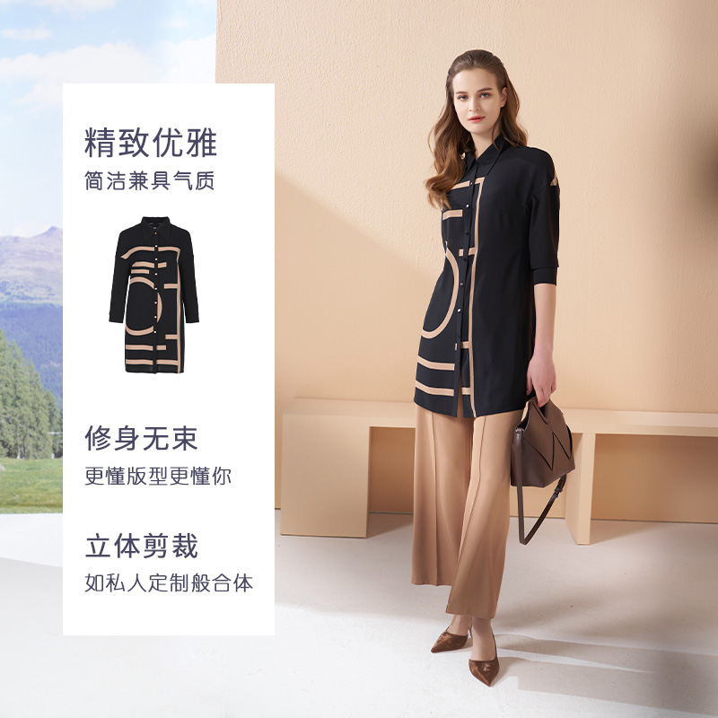 靓诺艺术几何印花衬衫女高级感轻奢减龄洋气2024夏季新款LT24201A